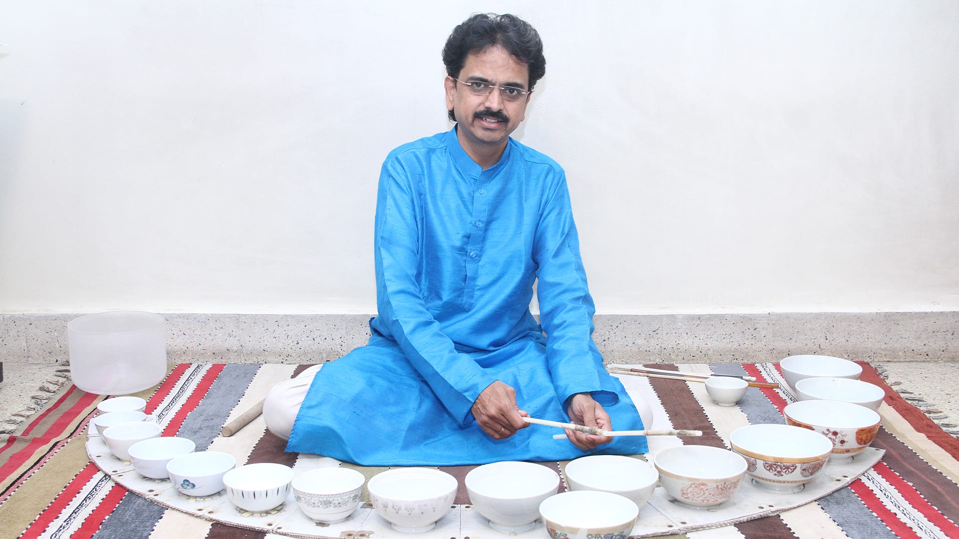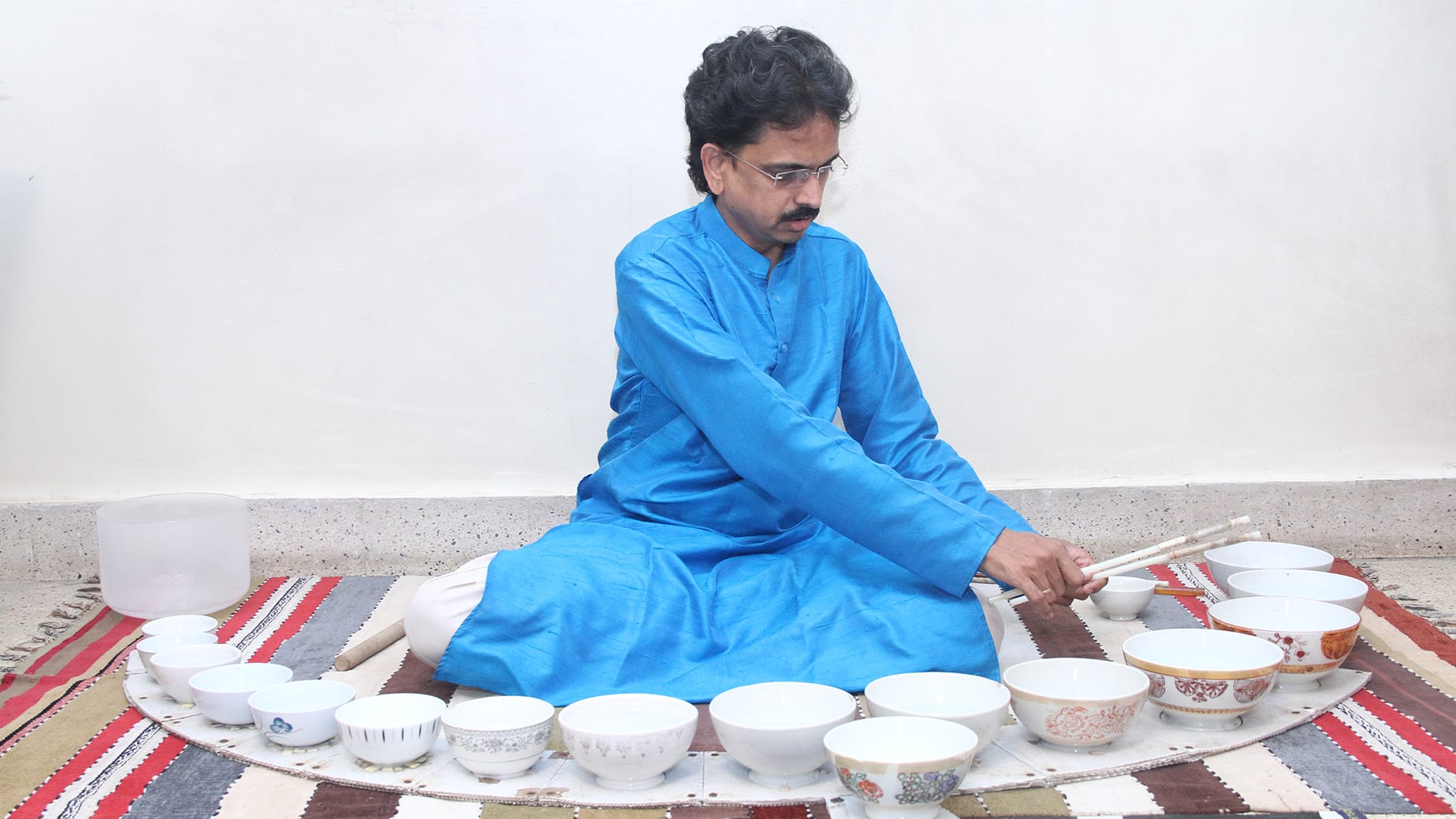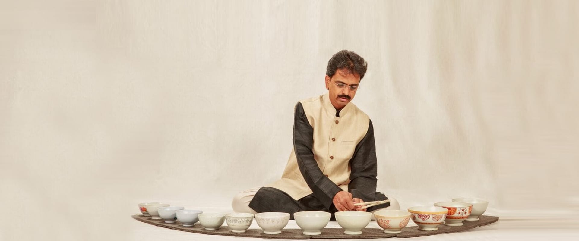 Pandit Milind Tulankar, born in 1968, is an Indian classical musician and one of the foremost contemporary exponents of the jal tarang, a rare and ancient melodic percussion instrument of remarkable subtlety and precision. A versatile and accomplished artist, he is proficient not only in jal tarang but also in vocal music, santoor, harmonium, tabla and sitar, reflecting a comprehensive grounding in both melodic and rhythmic traditions of Indian classical music. Currently, Pandit Milind Tulankar serves as a music composer at the Film and Television Institute of India, Pune, where his work bridges classical sensibilities with contemporary creative expression.