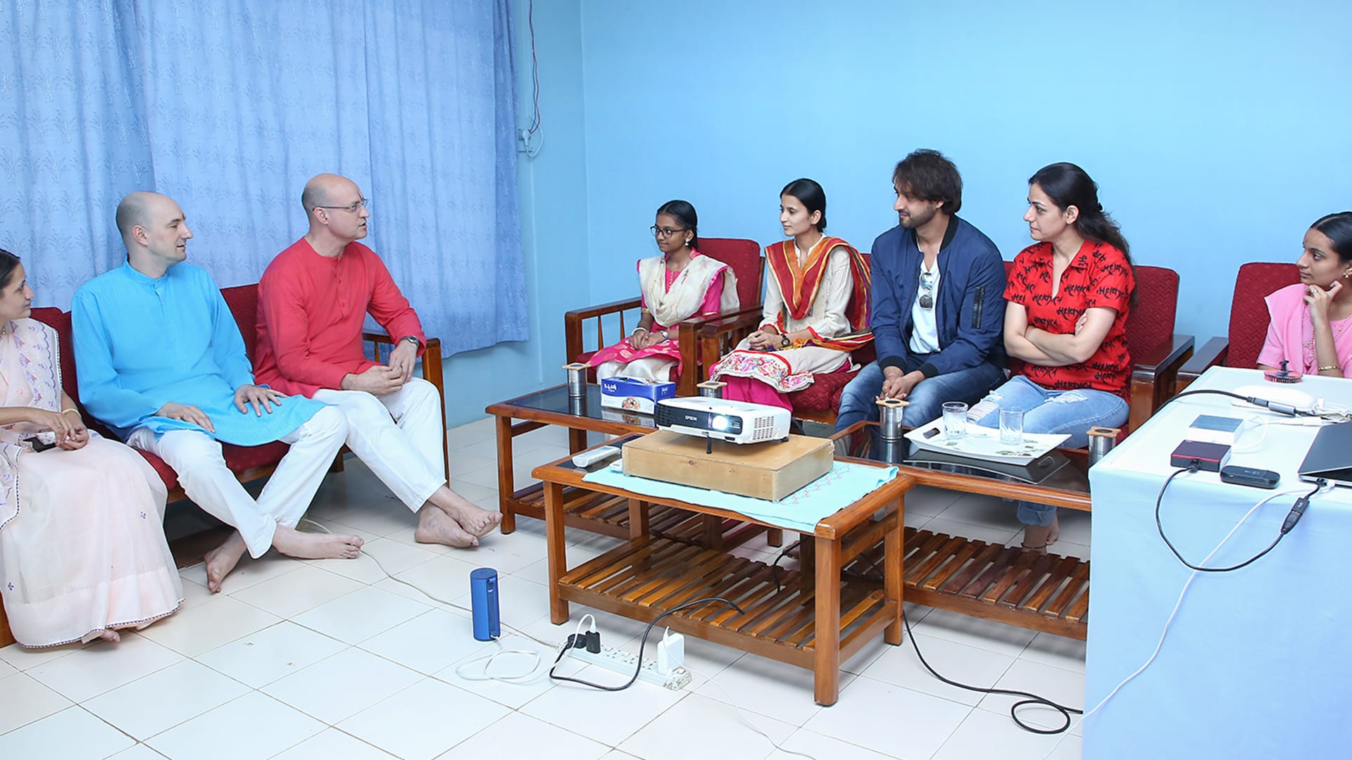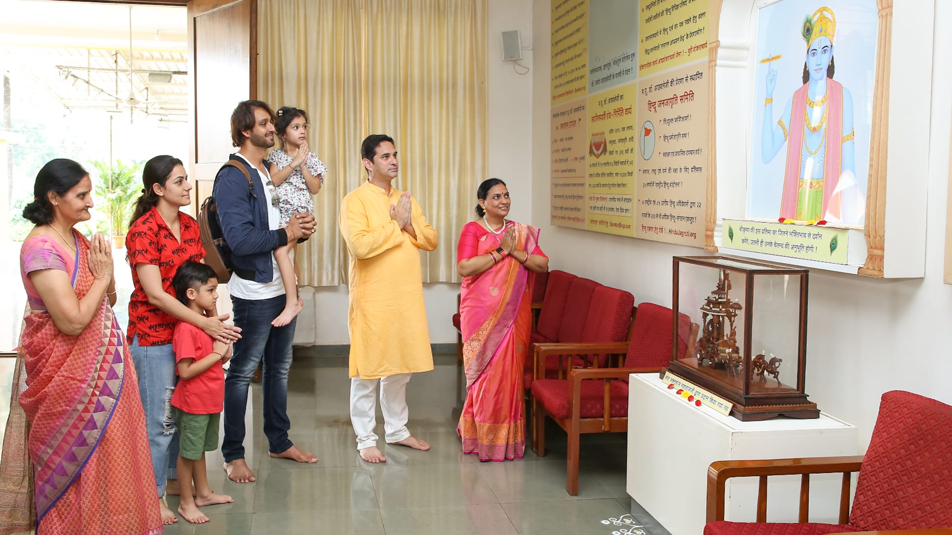 After meeting Sourabh Raaj Jain, the MAV Team presented him a sattvik Shrikrishna picture made by seekers, which deeply touched him and awakened his spiritual emotion. He felt a strong inner pull to visit the Ashram and, despite his busy schedule, chose to come with his wife, mother, and twin children so they too could experience its sattvik atmosphere. While observing the research and activities at MAV, he asked insightful questions and earnestly sought guidance on his own spiritual growth.