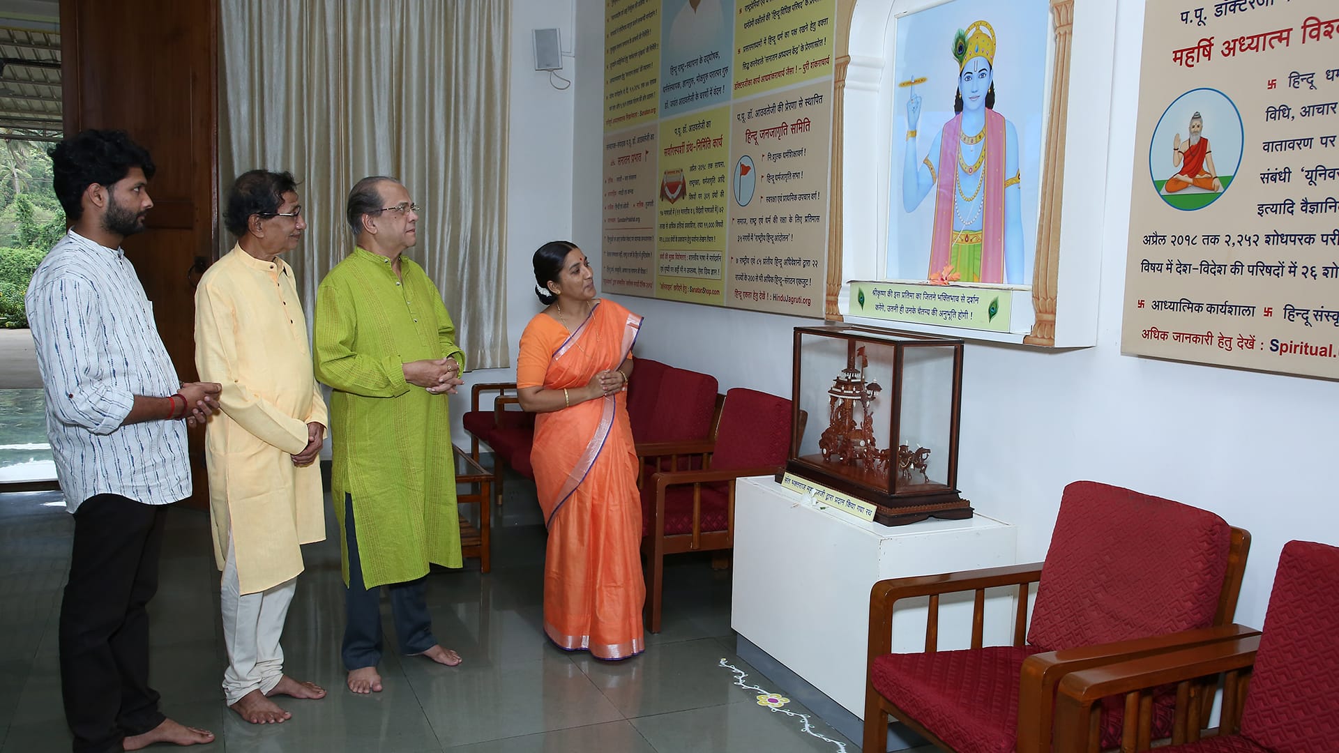 During his visit to the Spiritual Research Centre and Ashram, he told the young seekers that understanding and practicing spiritual practice at such an early age is nothing but God’s grace. He urged them to nurture and deepen this divine gift, as they have been chosen for a greater spiritual purpose. He also actively participated in research on harmonium playing at the university.