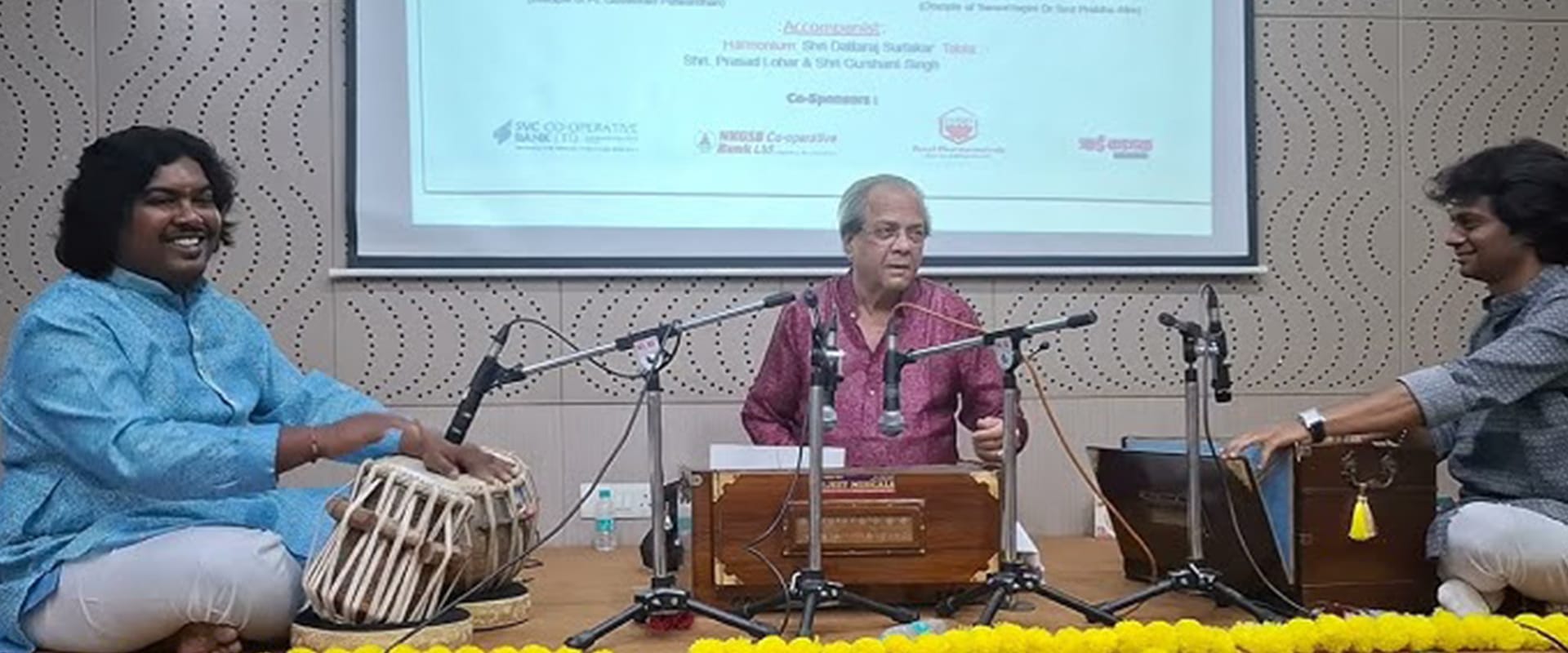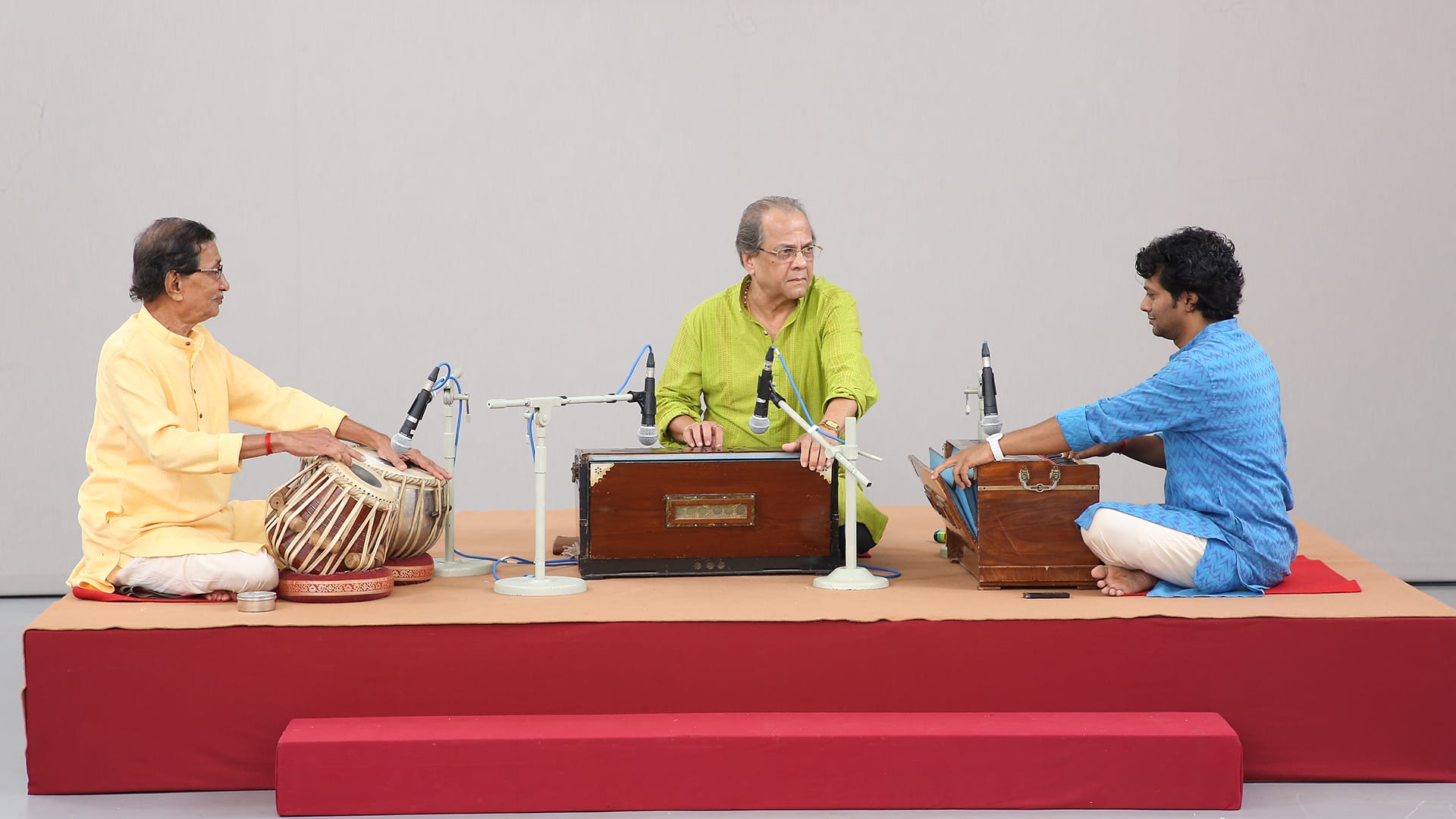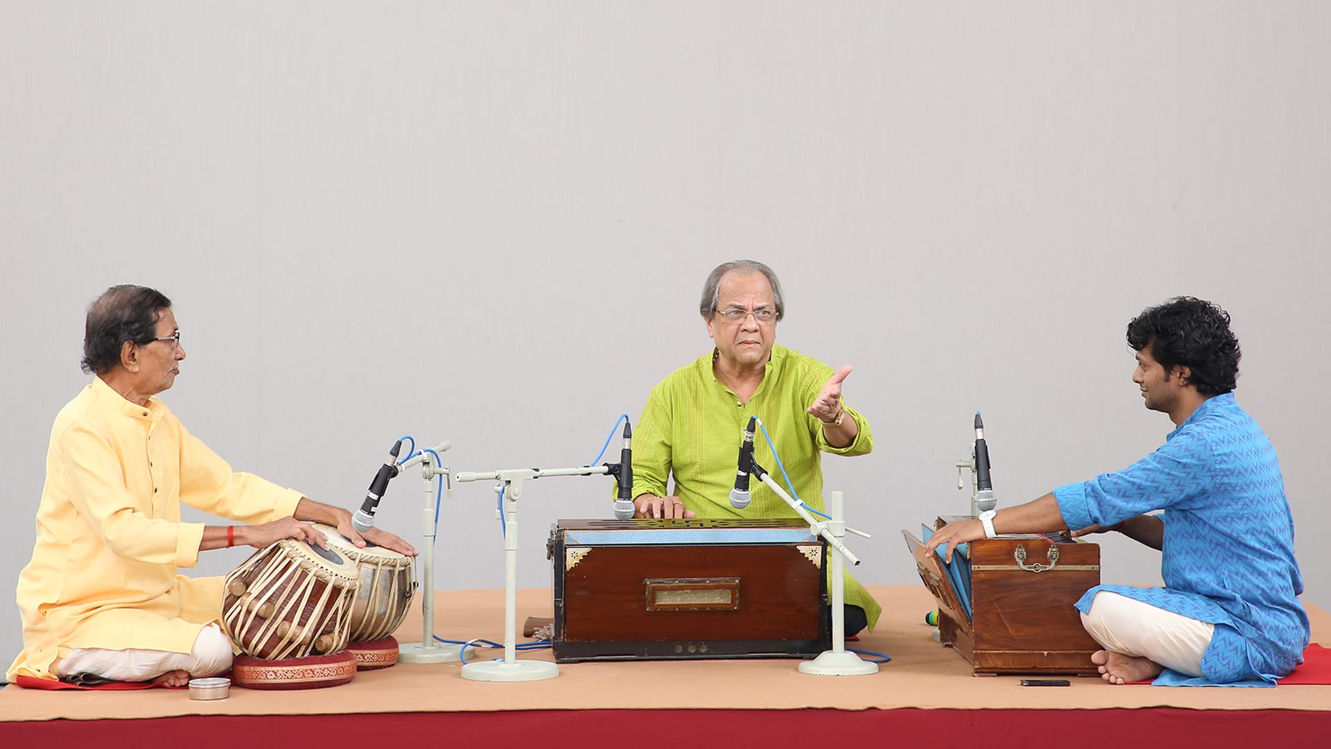 Pandit Vishwanath Kanhere is a celebrated harmonium maestro known for his melodic precision, expressive phrasing, and deep command over Indian classical music. He began his musical journey under the guidance of his father, the revered kirtankar H.B.P. Ramchandrabua Kanhere. Pandit Kanhere’s further training under eminent gurus Pandit Eknath Thakurdas, Pandit Govindrao Patwardhan, Pandit Jitendra Abhisheki and Pandit Ram Marathe honed his technique, improvisational skills, and nuanced understanding of ragas.