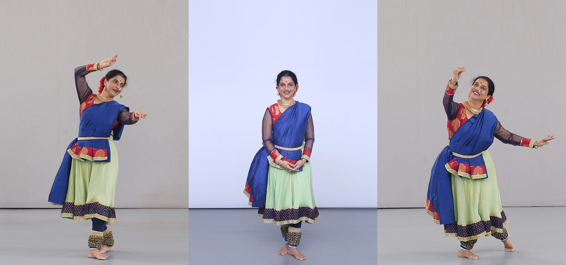 In the first experiment, the dancer performed Vandana (Salutation) in Pancham Swari taal (rhythmic cycle) in the studio of MAV. Her aura was measured at multiple points—on entering the Ashram initially, after wearing her costume and makeup (before the performance), and finally, after the performance. The auras of the audience and ghunghroos (bells) were also measured before and after the dance.