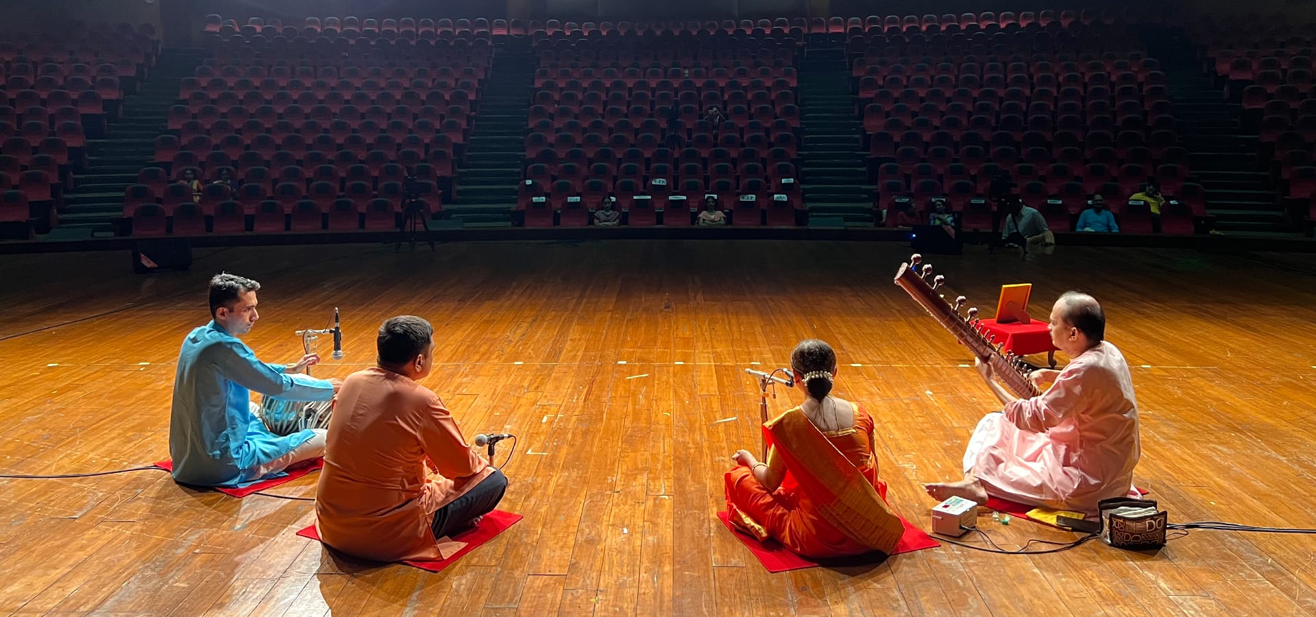 Key findings revealed significant increases in positive auras after performances in temples and the ashram studio, with the ashram showing the strongest effect—some performers’ auras grew by up to 500%, and even non-living objects such as musical instruments and the photographs of the Deities showed a significant increase. Conversely, performances in the auditorium led to a marked decrease in positive energy in some cases.